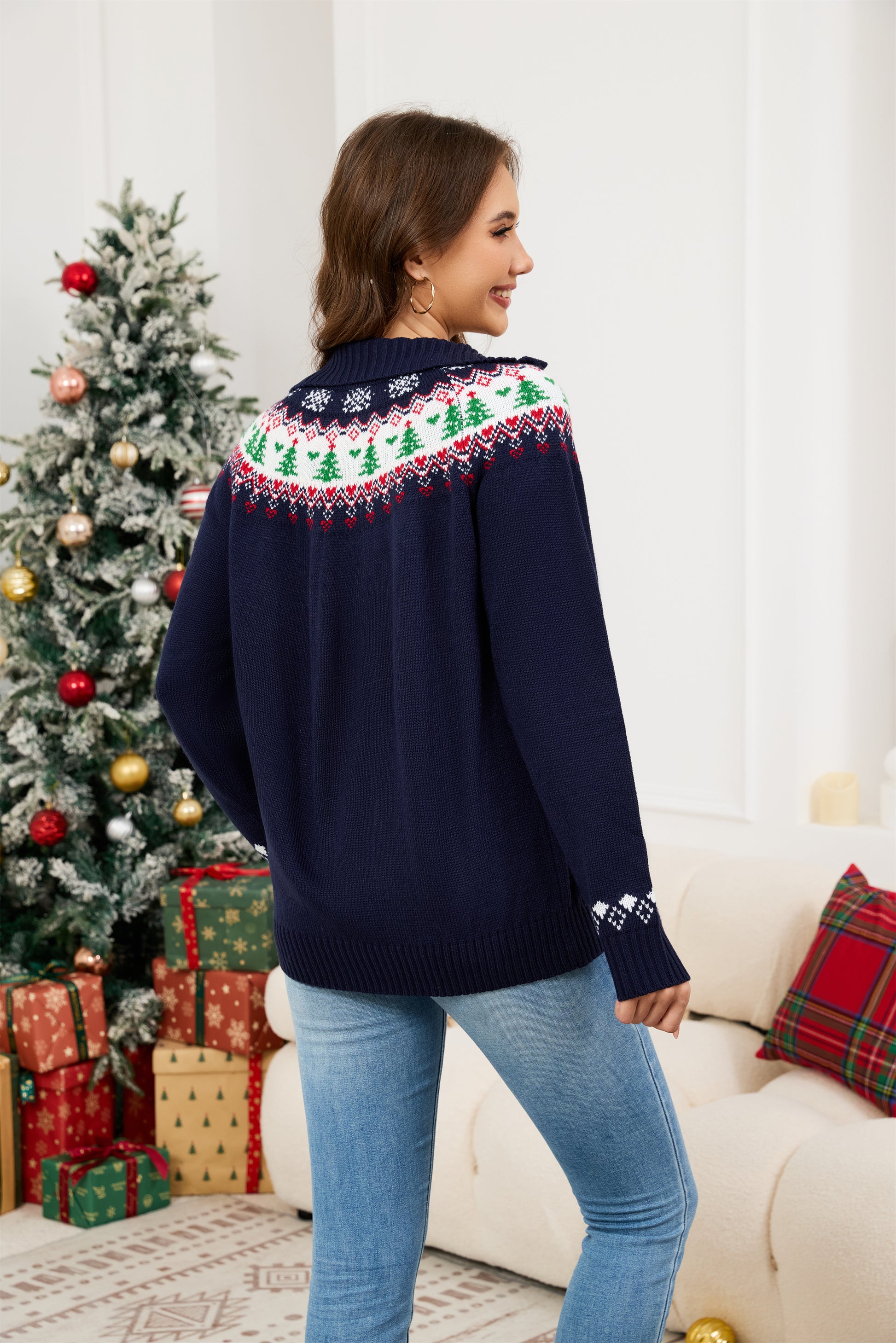 FASHION: 1/4 zipper mock neck design, looking simple, timeless,fashionable and mature.Ugly Christmas sweaters knitted pullover casual mock neck long sleeve sweater with classic pattern, adding a trendy element to this classic ugly Christmas sweaters, making it suitable for both casual and semi-formal occasions.